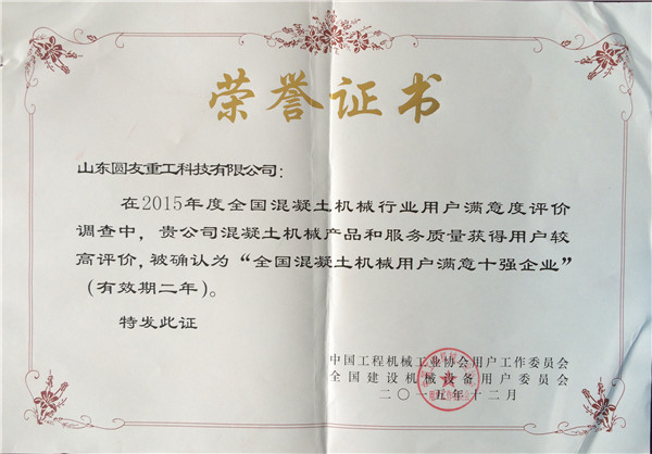 全国混凝土机械用户满意十强企业